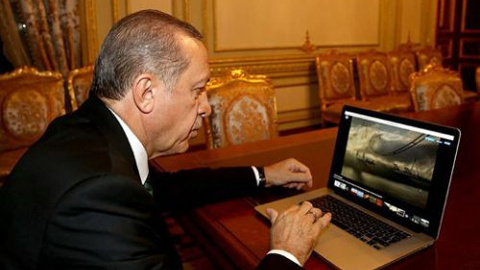Oyalamada en çok dikkat çeken şey ise Cumhurbaşkanı Erdoğan’ın arka kısmında kendi imzası ve Cumhurbaşkanlığı forsu yer alan Apple Mac bilgisayarı oldu. Erdoğan daha öncede bir intihar girişimini engellerken iPhone 6S Plus kullanıldığı görülmüştü.
