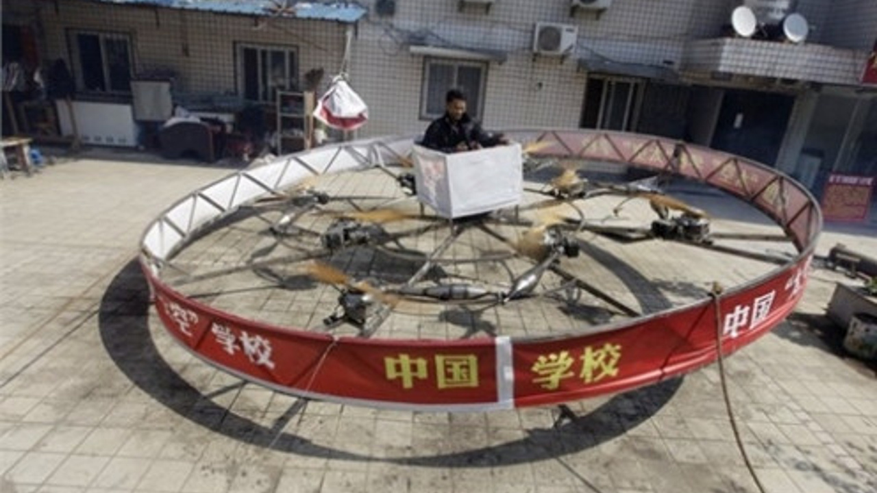 Ev yapımı uçak Çinli çiftçilerin uçak ve benzeri üretimleri baş döndürüyor. Bu da yine uçmak için icat edilmiş bir makine.