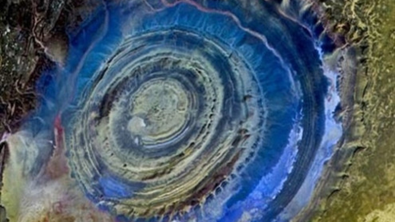 50 km çapındaki bu ilginç yapıyı yerden fark etmek ise mümkün değil. "Richat Yapısı" denilen dairesel yapının, önceleri meteor taşının düşmesi sonucu oluştuğu düşünülse de coğrafyacılar tarafından jeolojik zamanda su ve rüzgar erozyonundan oluştuğu belirlenmiş.