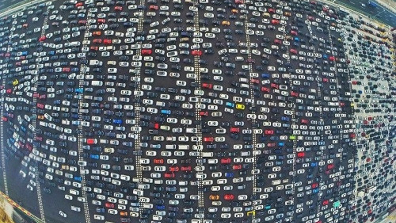 Çin'de Ulusal Gün kutlamaları trafiği vurdu. Pekin'de Pekin-Hong Kong-Makau ekspres yolunun halini gösteren 6 Ekim'e ait fotoğraflar bütün dünyanın dikkatini çekti. 50 şeritli yolun tamamen dolu olması ve araçların hareket dahi edemediği görülüyor. 50 şer
