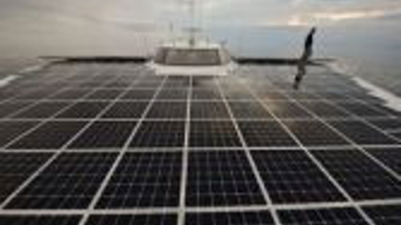 Korsika Görüntüsüyle nefes kesen tekne Planetsolar katamaran ve kaptanı üzerinde yürürken