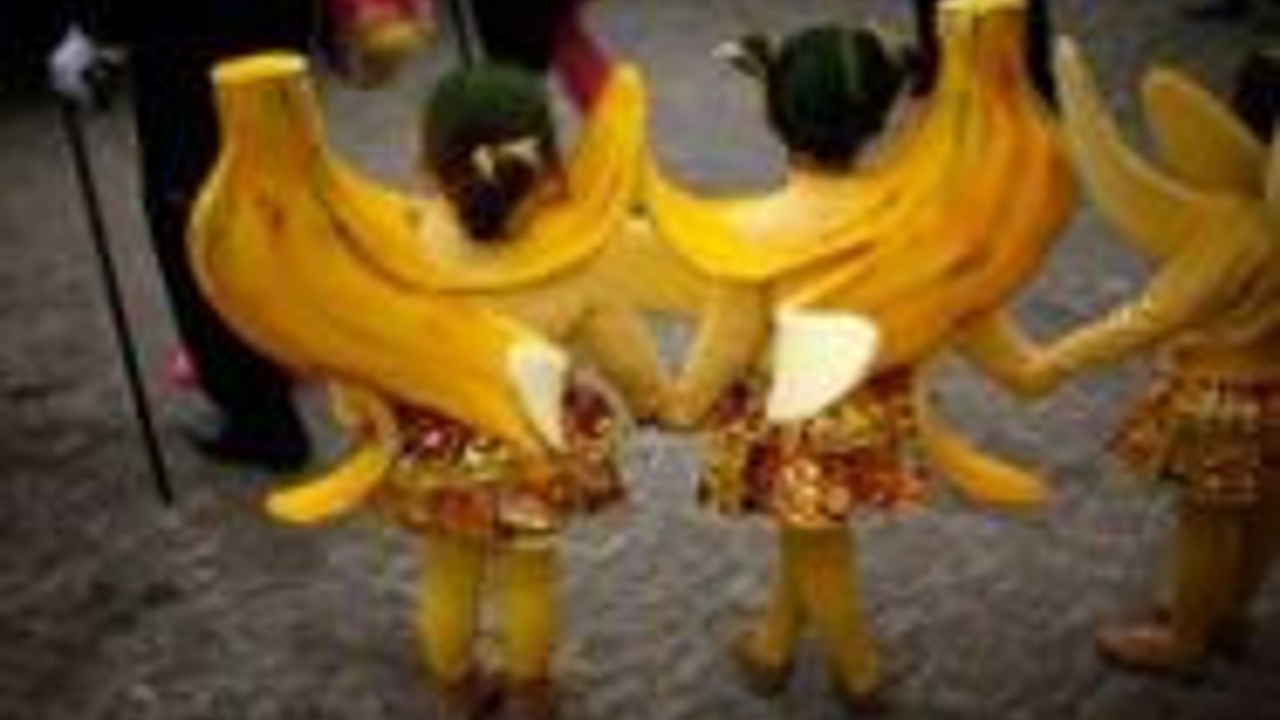 Portekiz:Samba geçiş törenine katılmayı bekleyen muz kostümlü minik kızlar.