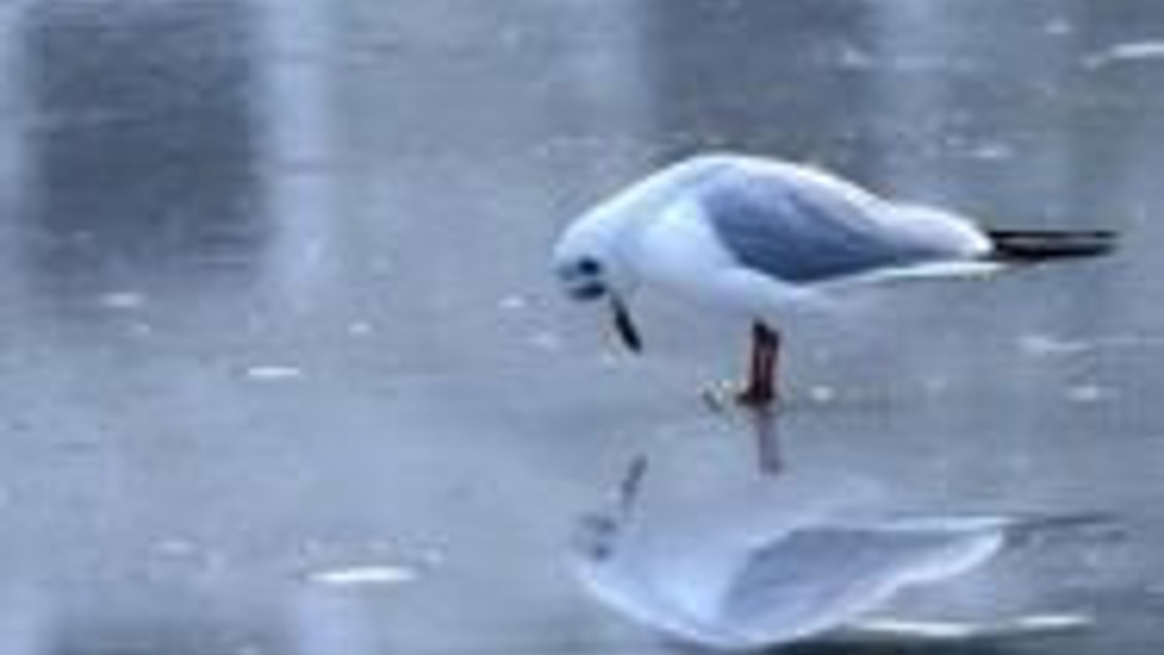 Almanya:Donmuş gölde kendini izleyen martı