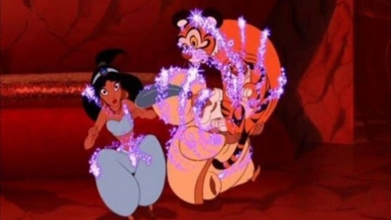 Alaaddin Jasmine’in kaplanı Jafer’in büyüsünden kurtulduğu sırada ortaya çıkan kulakları aynı Mickey Mouse’un kulaklarını andırıyor.