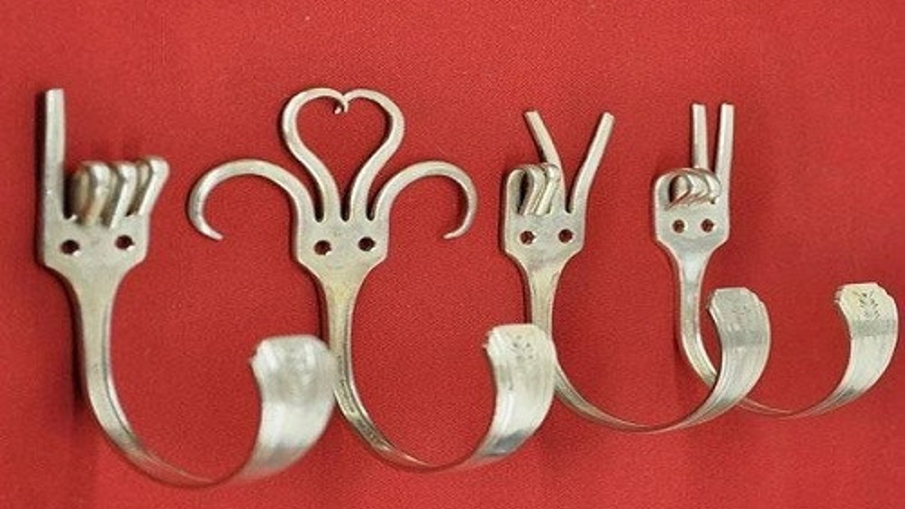 Çatallardan yapılmış bir askılık. Çok şık..