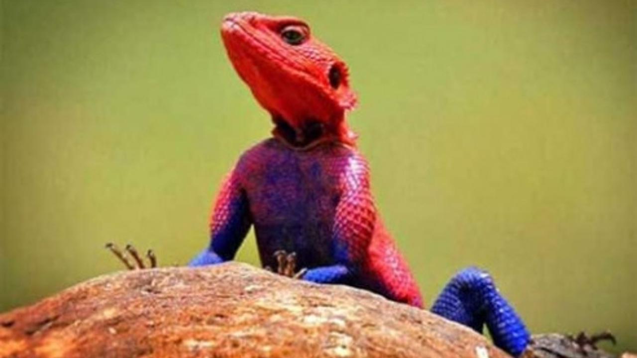 Agamidae familyasından Agama mwanzae cinsi bu kertenkele Tanzanya, Kenya ve Ruanda’da yaşıyor. 2009 yılında çekilen bu fotoğraftaki kertenkele, örümcek adam karakterine benzemesiyle o kadar popüler oldu ki; bu tür insanların evlerinde besledikleri birer evcil hayvan haline geldi.