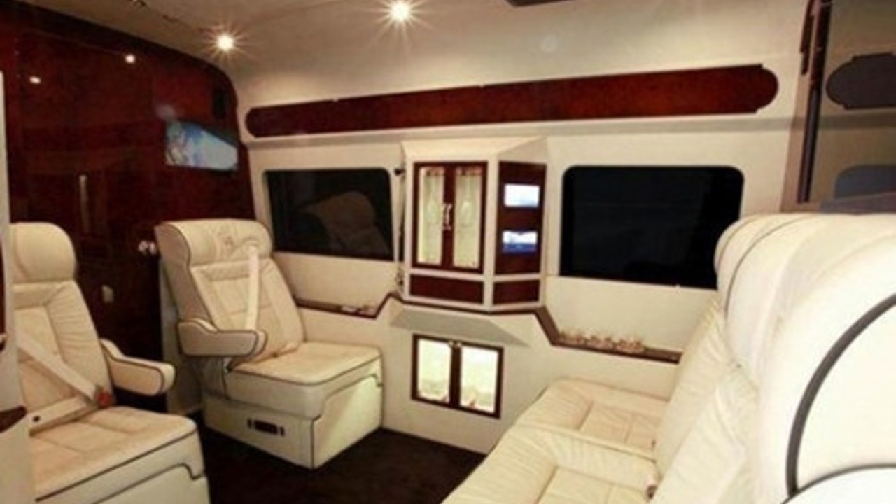 Dışarıdan oldukça mütevazı görünen bu Sprinter L5-B’nin iç mekanına geçildiğinde bir modifiye tarafından uygulanan lüks özelleştirme paketi sizi karşılıyor.