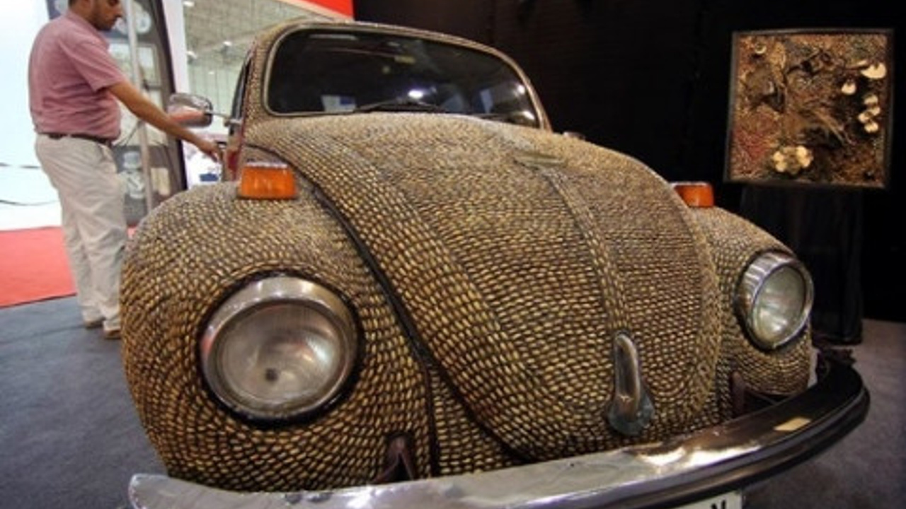 Fıstık kabuklarını kullanarak ayakkabıdan tarağa, mutfak eşyalarından gitara kadar pek çok eşyayı sanat eserine dönüştüren Gaziantepli Nilay Gündüz, bu kez de bir otomobilin kaportasını yarım ton fıstık kabuğu kullanarak dizayn etti.