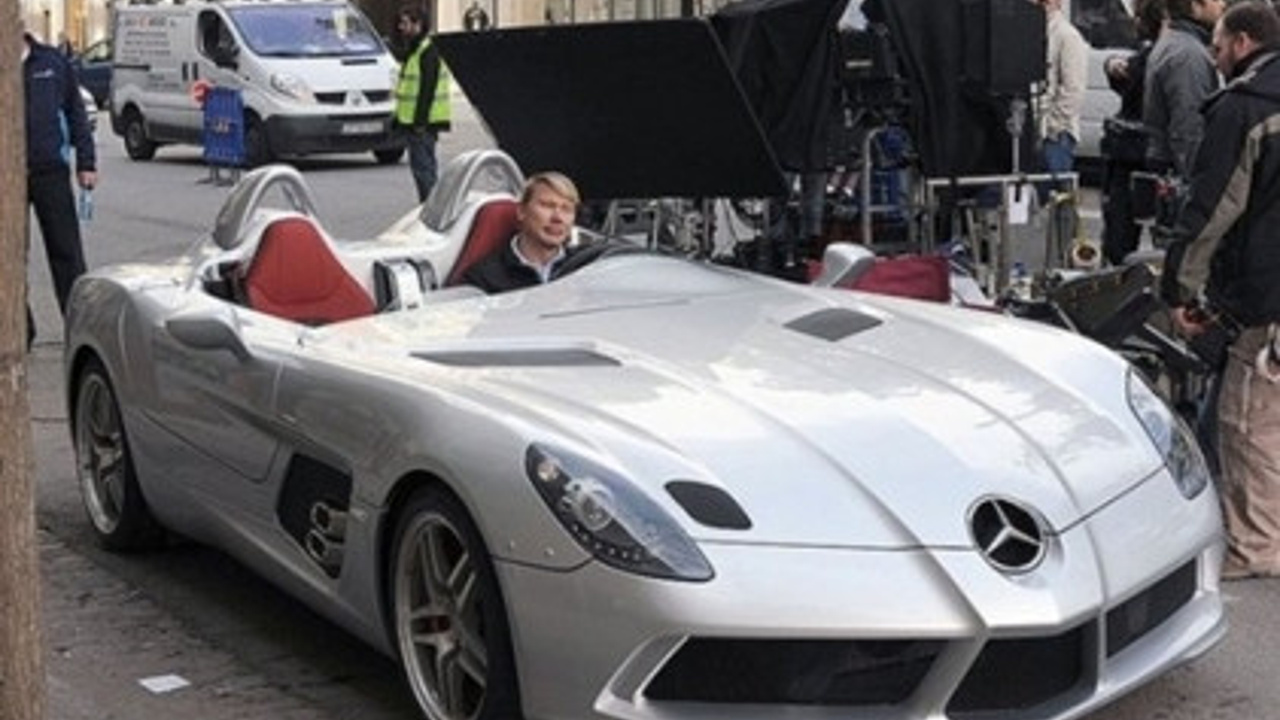 Mika Hakkinen Mercedes McLaren SLR Stirling Moss edition'ın direksiyonunda. Sadece 75 adet üretildi. Tavanı ve ön camı yoktu. Bu muhteşem otomobil 640 beygir güç üreten V8 motoruyla 400 km/s hıza çıkabiliyordu.